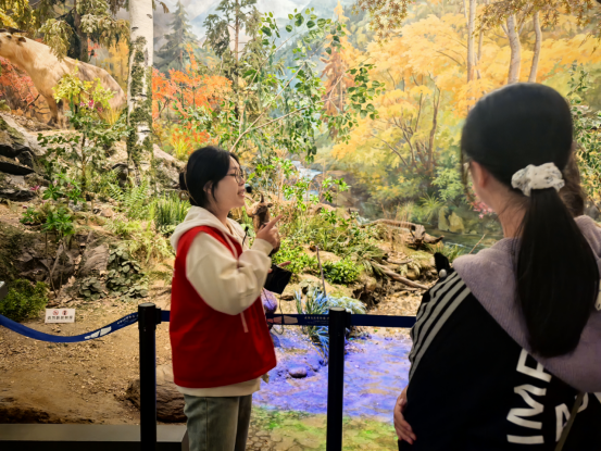 讲解服务主要集中在一周中人流密度最高的周末,从清晨开馆到日暮闭馆,从地质环境厅到缤纷生命厅6个核心展厅都有讲解志愿者们活跃的身影,为络绎不绝的观众带来一场场知识盛宴。讲解志愿者们用通俗且有趣的语言让复杂的科学知识变得亲切易懂。有观众在留言中表示:“志愿者讲得特别好,有问必答,让孩子对科学产生了浓厚兴趣!”