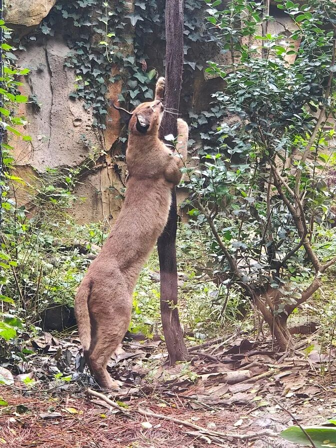 与此同时,在食物处理上,饲养员也考虑到了这一点,兼顾了健康与野性习性。以往为了保留他们的野性撕咬感,食物会尽量保留皮毛;虽说也种植了小草,但考虑到草量还是较少,怕他们难以及时通过吃草将肠胃里的毛发裹成团吐出,过多皮毛反而可能增加消化负担。