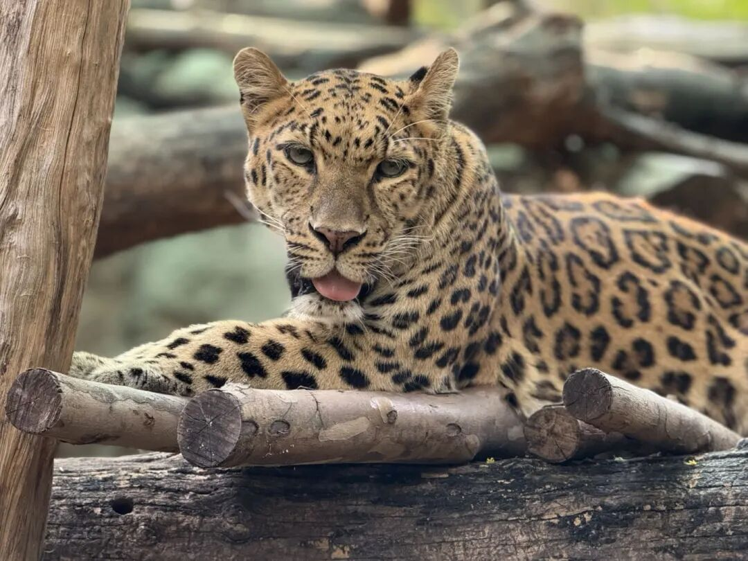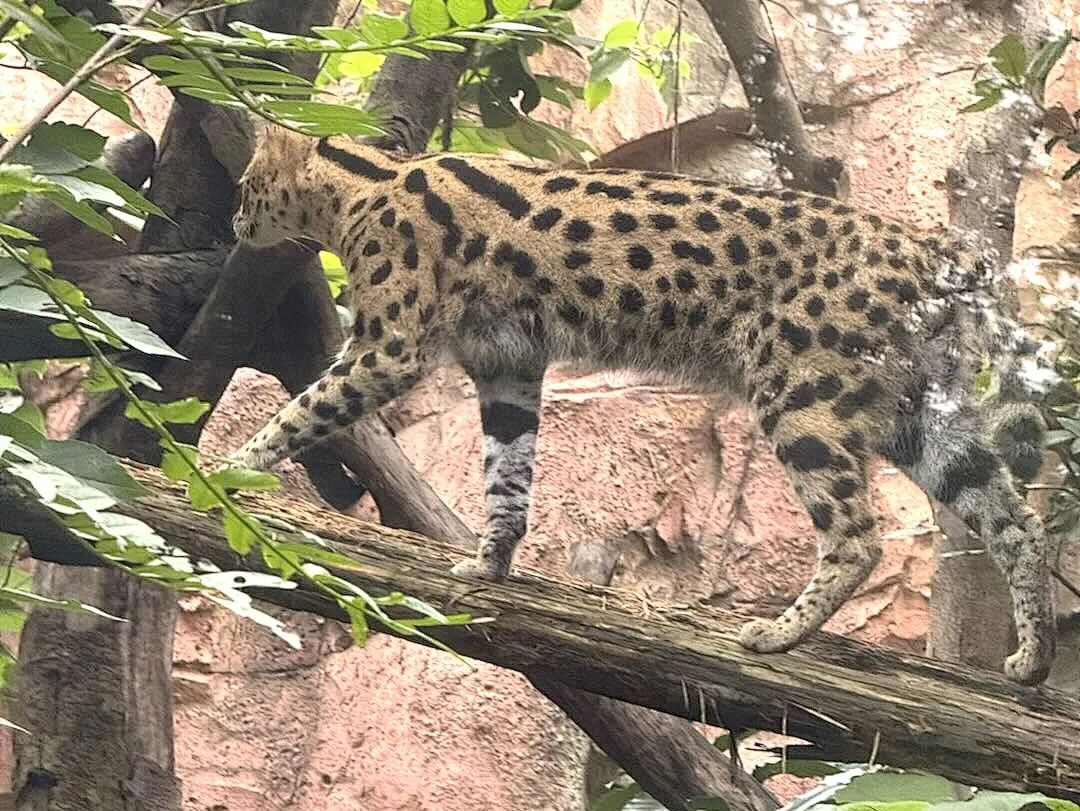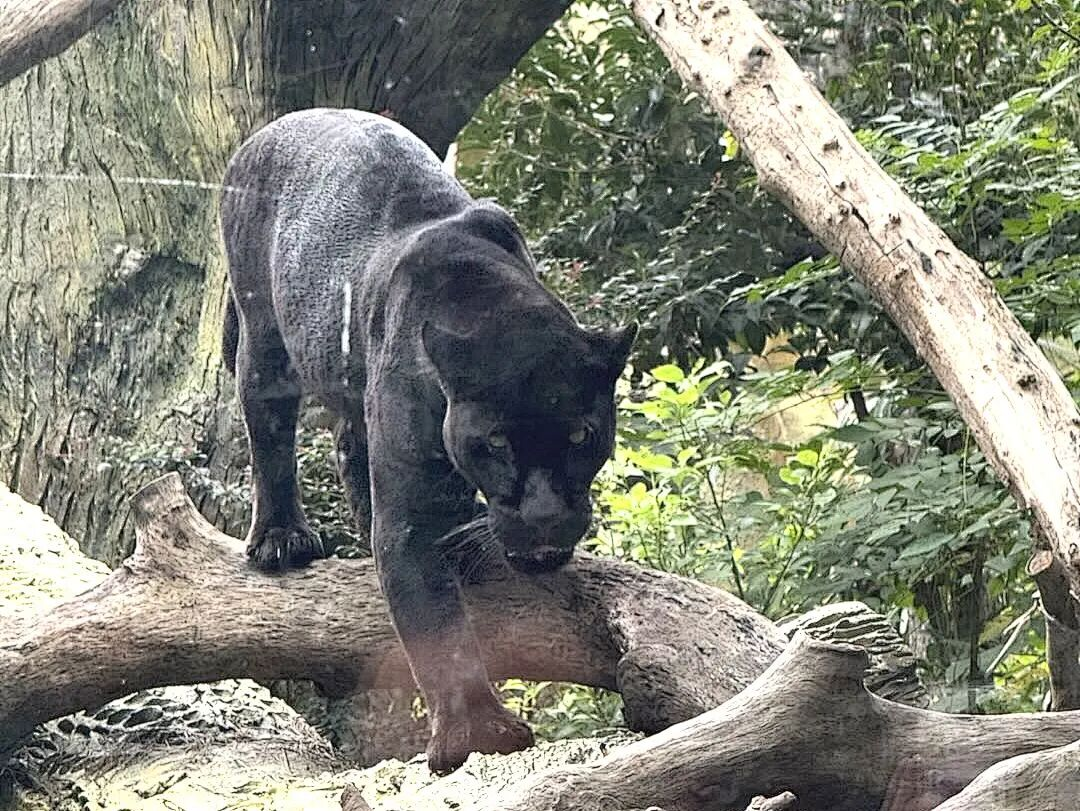 对于美洲豹里昂,饲养员将麻袋缠成球形,里面塞进食物,再用结实的登山绳绑在树干上,里昂一看到就立刻凑上前,先是尝试扯断登山绳,可绳子太过牢固,他便转而对着麻袋下嘴,一次次撕扯、啃咬,折腾了好一会儿才终于咬开麻袋吃到食物。