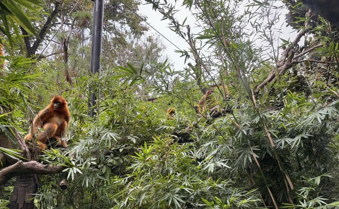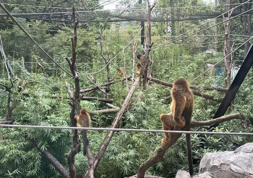 川金丝猴是唐家河最具代表性的灵长类动物。它们需要高挑的空间和多层次的栖架,因此川金丝猴的展区挑高近10米,设有软绳、硬木、活树等多层次栖架结构,满足不同年龄个体的攀爬、跳跃、休憩需求;