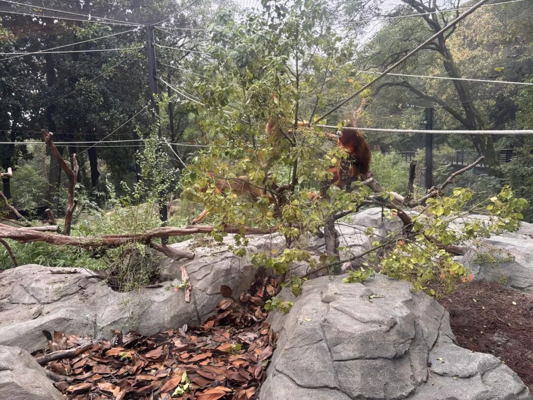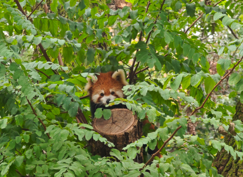 小熊猫的展区保留了一棵原生枫杨树,并围绕它设计了整个小熊猫栖息环境。在唐家河设计之初,总设计师便十分确定,这是一棵小熊猫会喜欢的树。饲养员还在树木之间搭建了多路径栖架,让小熊猫们拥有多种攀爬选择,在树与树之间自由穿梭;
