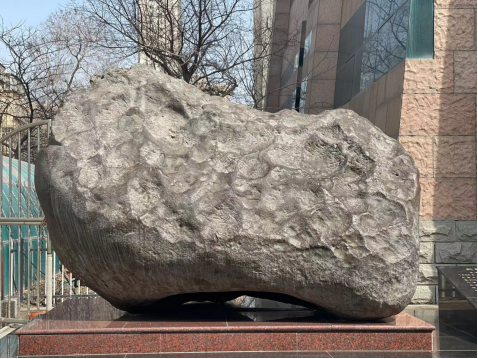 新疆就有一颗从天上掉下来的星星,它矗立在新疆地质矿产博物馆旁,人们不但能够看到、还可以亲手摸摸这颗来自外太空的迷人星体。