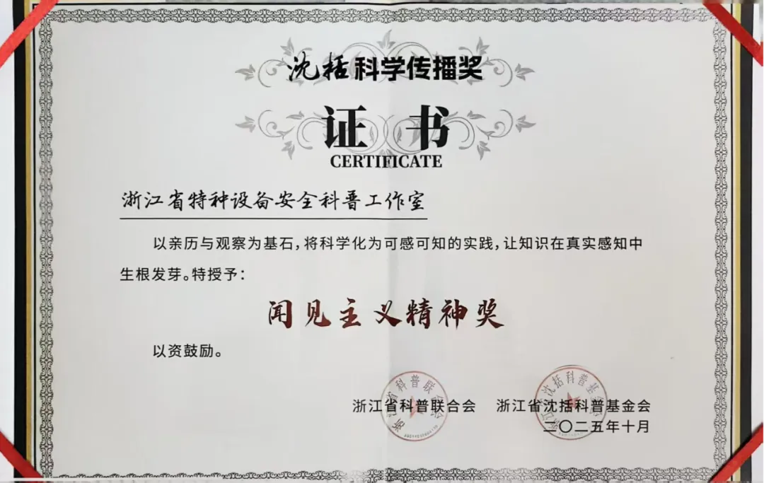 据悉,“沈括科学传播奖”的设立是为推动“凡人驭AI”的创新实践,省特科院特种设备安全科普工作室获“闻见主义精神奖”,是全省市场监管系统、也是行业内唯一获奖单位。近年来,省特科院创新打造“流动式”科普课堂,一场场有趣动听的故事和手工体验,用互动体验式教学把复杂的科技理念让科学变得“看得见、摸得着”,将特种设备安全理念深植于公众日常。