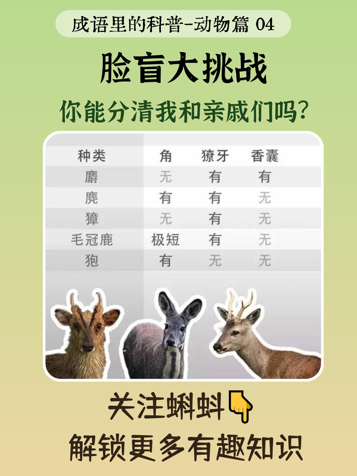 🦌🐆🦌麝、獐、麂,傻傻分不清?一招搞定!