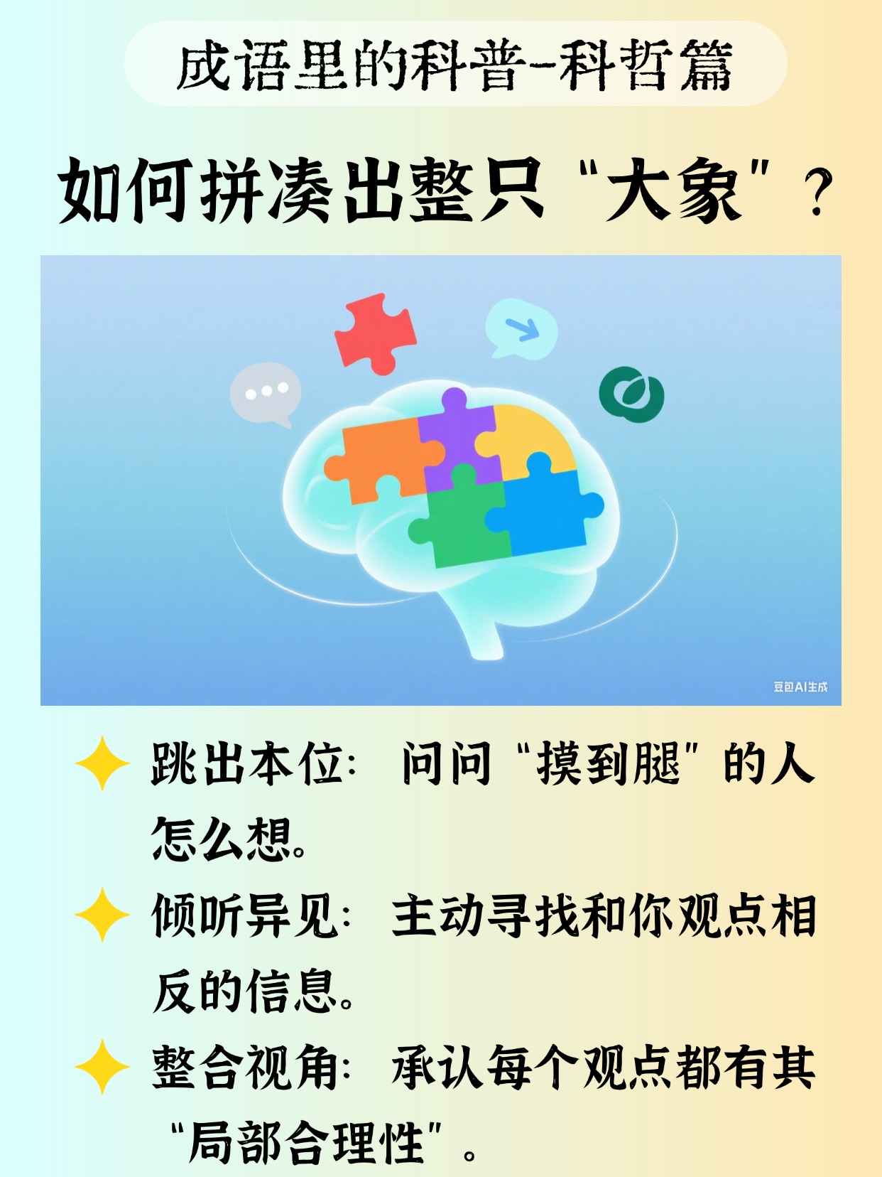 他们不会急着争论“我对你错”,而是更愿意倾听、整合,慢慢拼出一头完整的“大象”。