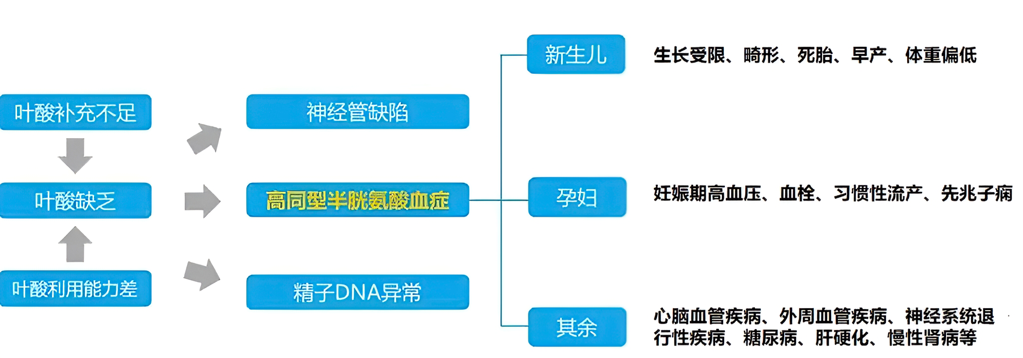 图2 叶酸缺乏导致多种疾病 (图片来源于网络,版权归原作者)