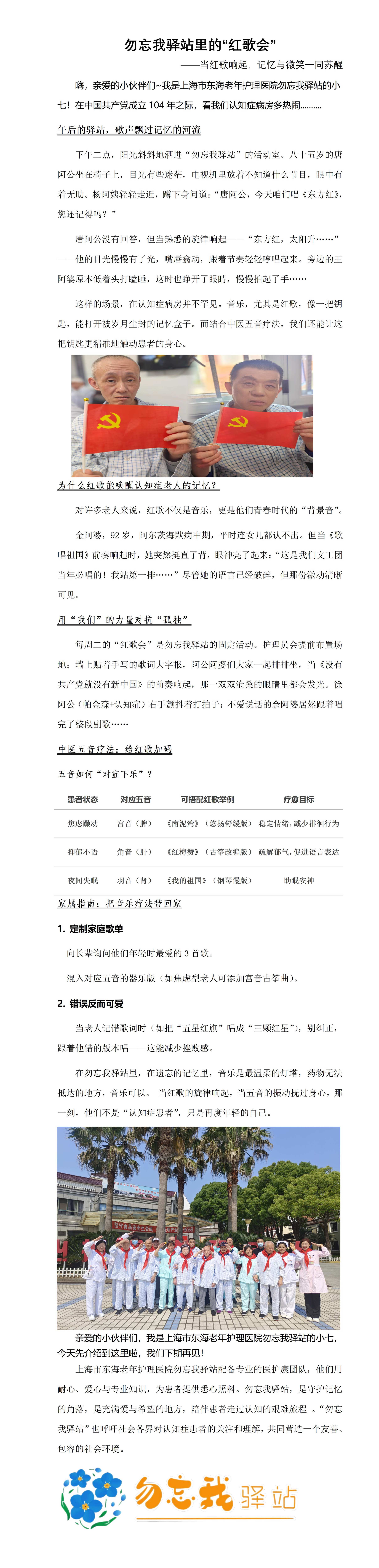 东海护理科普丨勿忘我驿站里的“红歌会”
