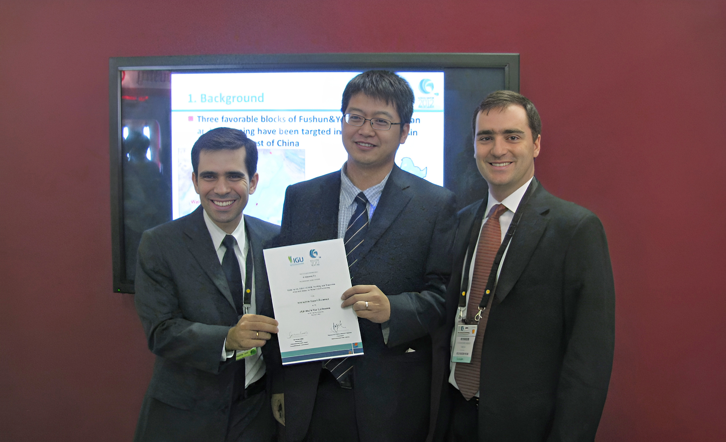 ▲付永强(中)参加第二十届世界石油大会技术交流