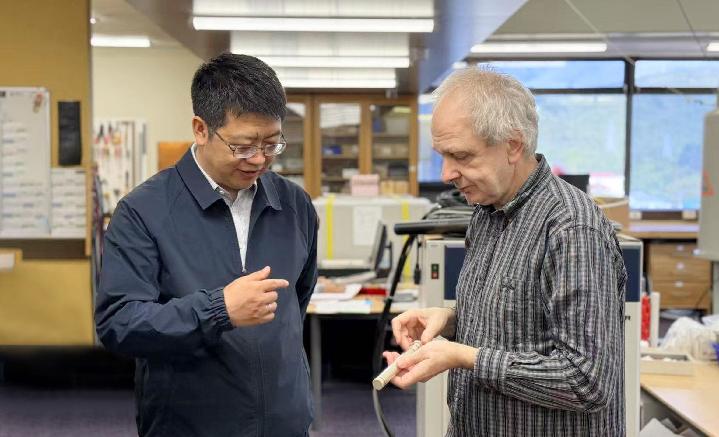 ▲付永强(左)与新西兰惠灵顿大学合作开展人工智能业务交流