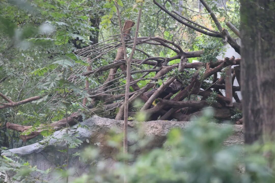 为帮冬至顺利离开原来的家庭、适应新生活,饲养员早早做好了“物理过渡”:在水池里架起竹子制成的竹排充当隔断,小假山顶端铺好荔枝木分隔区域,另一侧则装上网格铁门。