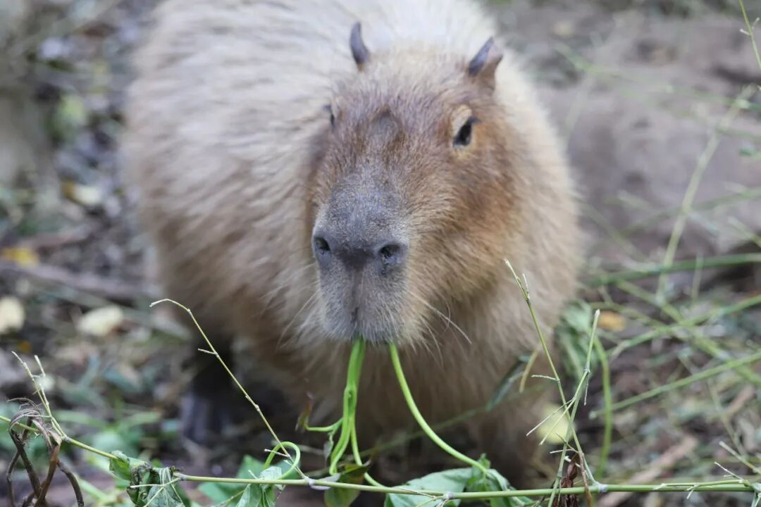 刚换完环境,水豚们就展现出了各自的适应方式:乐乐美美一进新住处,乐乐就不停用臀部、鼻梁在树枝和草茎上摩擦,把带自身气味的毛发和分泌物留下,疯狂标记领地;杏仁、想想、福宝也第一时间泡进池中,通过熟悉水质来适应新家。