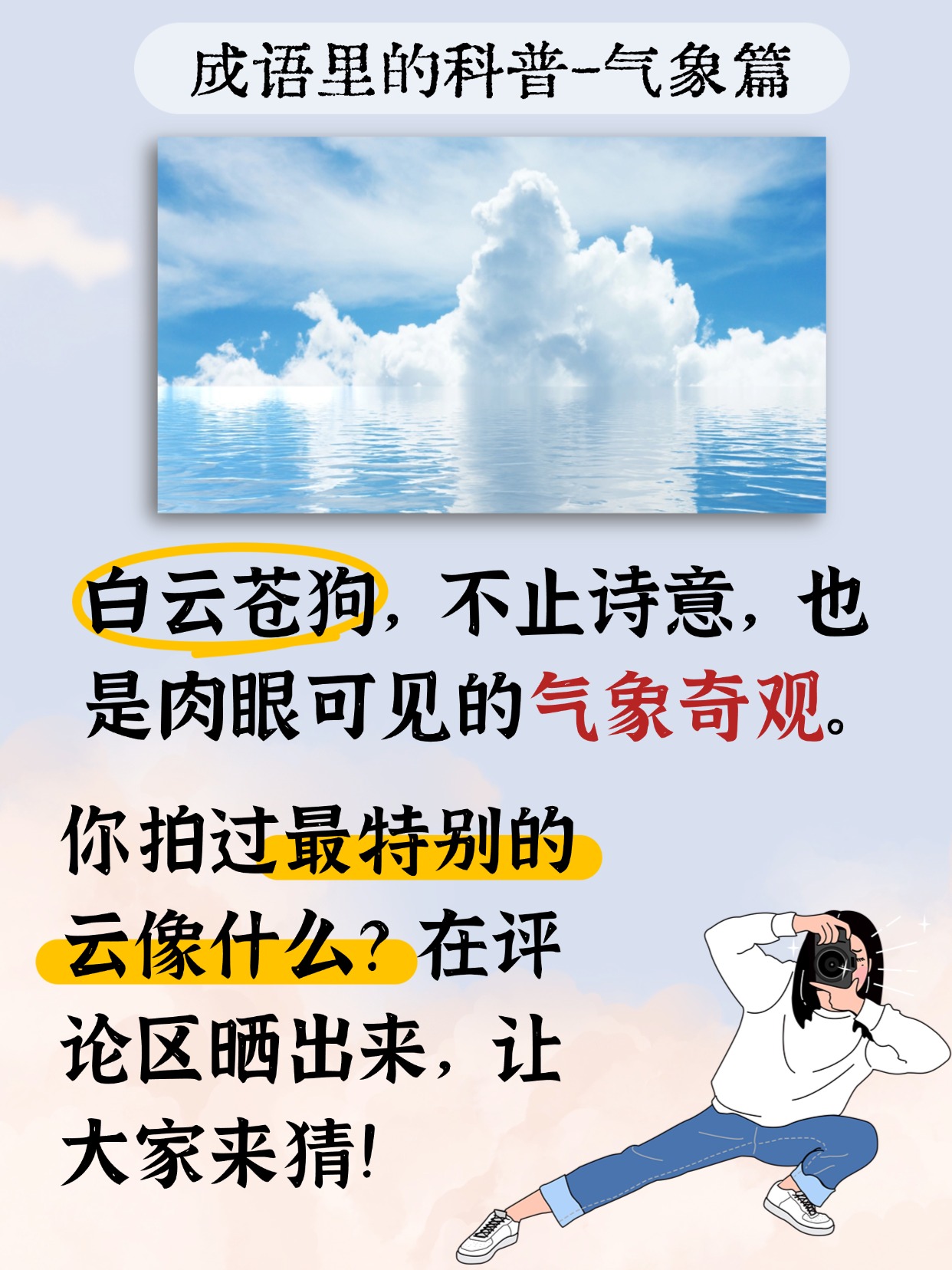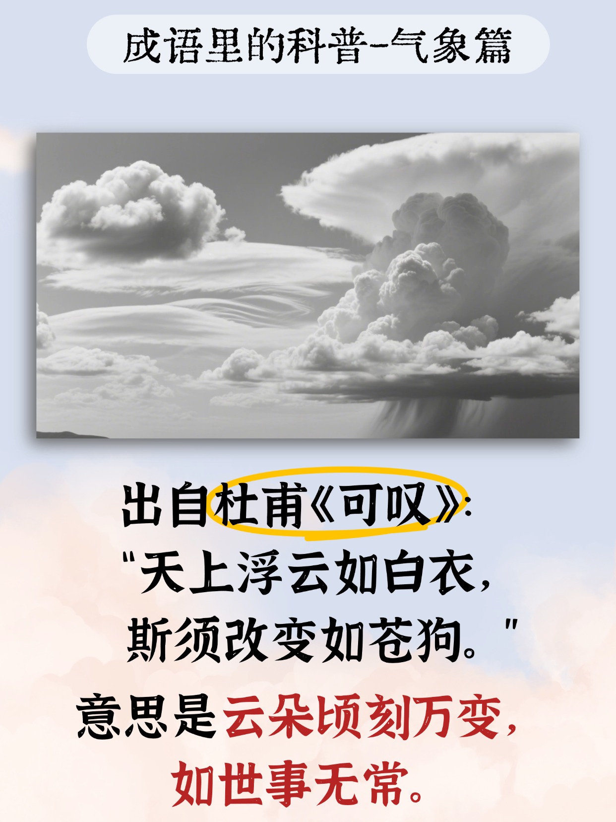 所以,当你下次看到天边的云卷云舒,不妨用“白云苍狗”来记录那一刻——它不仅是一句诗意的成语,更是一场肉眼可见的气象奇观。就像天气一样,生活中也有很多瞬间在不经意间就改变了模样,而这份无常,正是它的美。