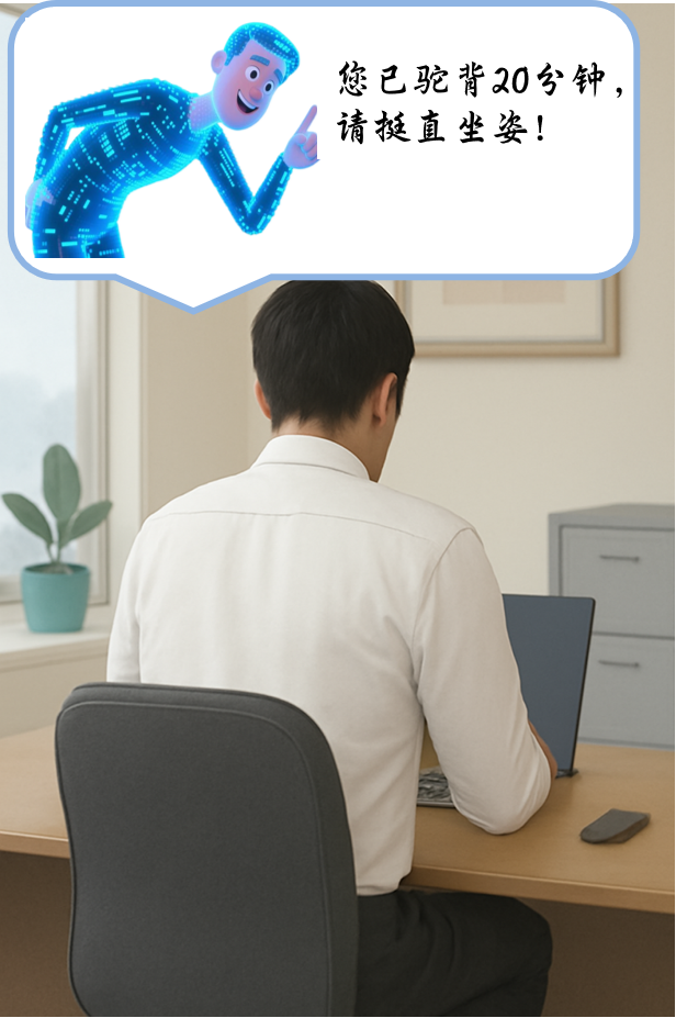 姿态管理:为久坐人群提供姿态矫正与健康监测,防止脊椎劳损。