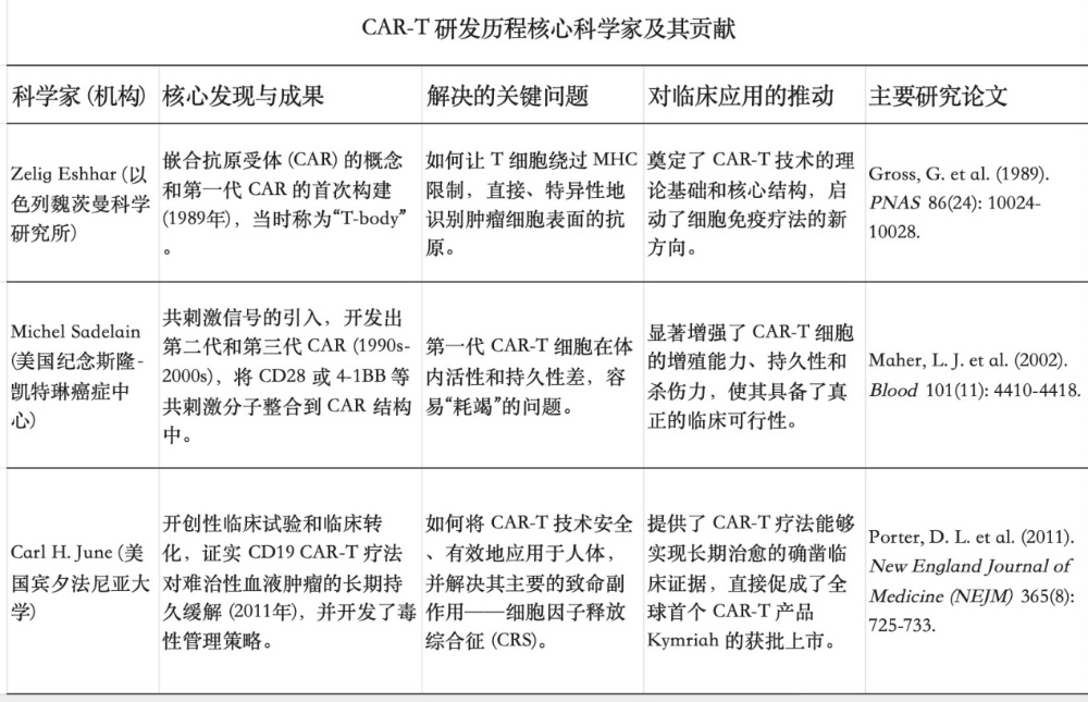 表1 CAR-T 疗法研发历程及核心科学家。作者整理