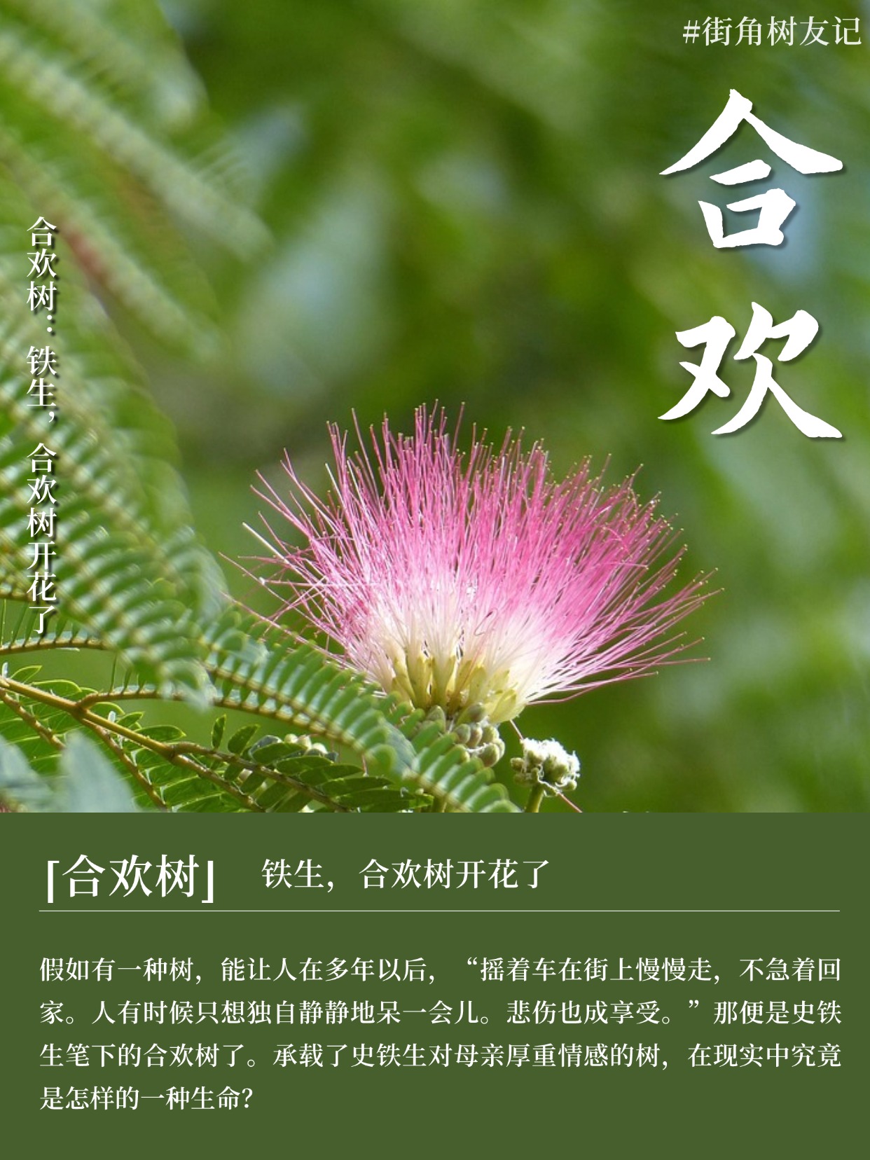 假如有一种树,能让人在多年以后,“摇着车在街上慢慢走,不急着回家。人有时候只想独自静静地呆一会儿。悲伤也成享受。”那便是史铁生笔下的合欢树了。承载了史铁生对母亲厚重情感的树,在现实中究竟是怎样的一种生命?