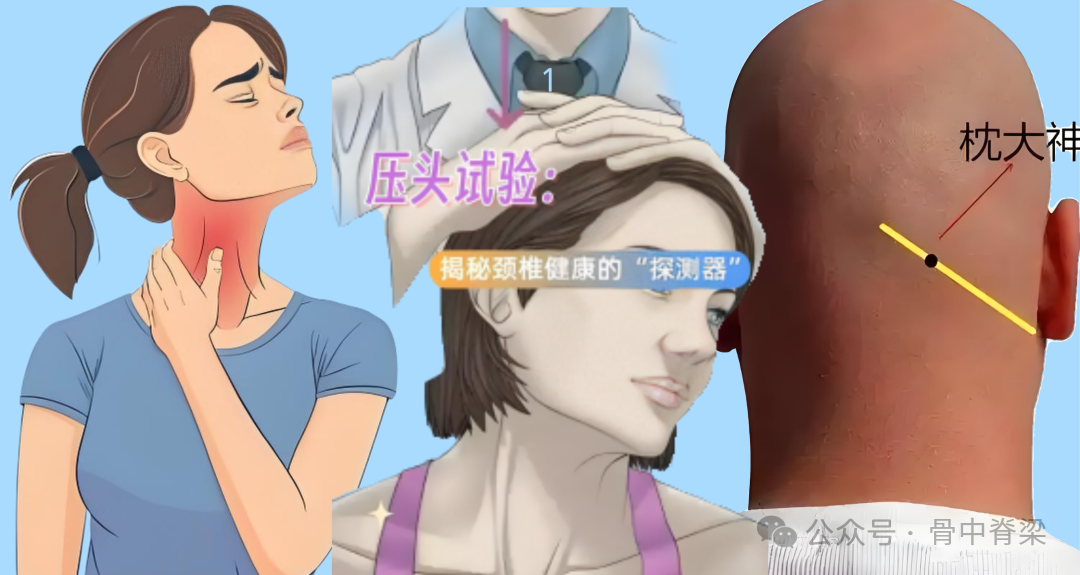 按压颈椎旁1-2厘米处(枕神经出口)剧痛。