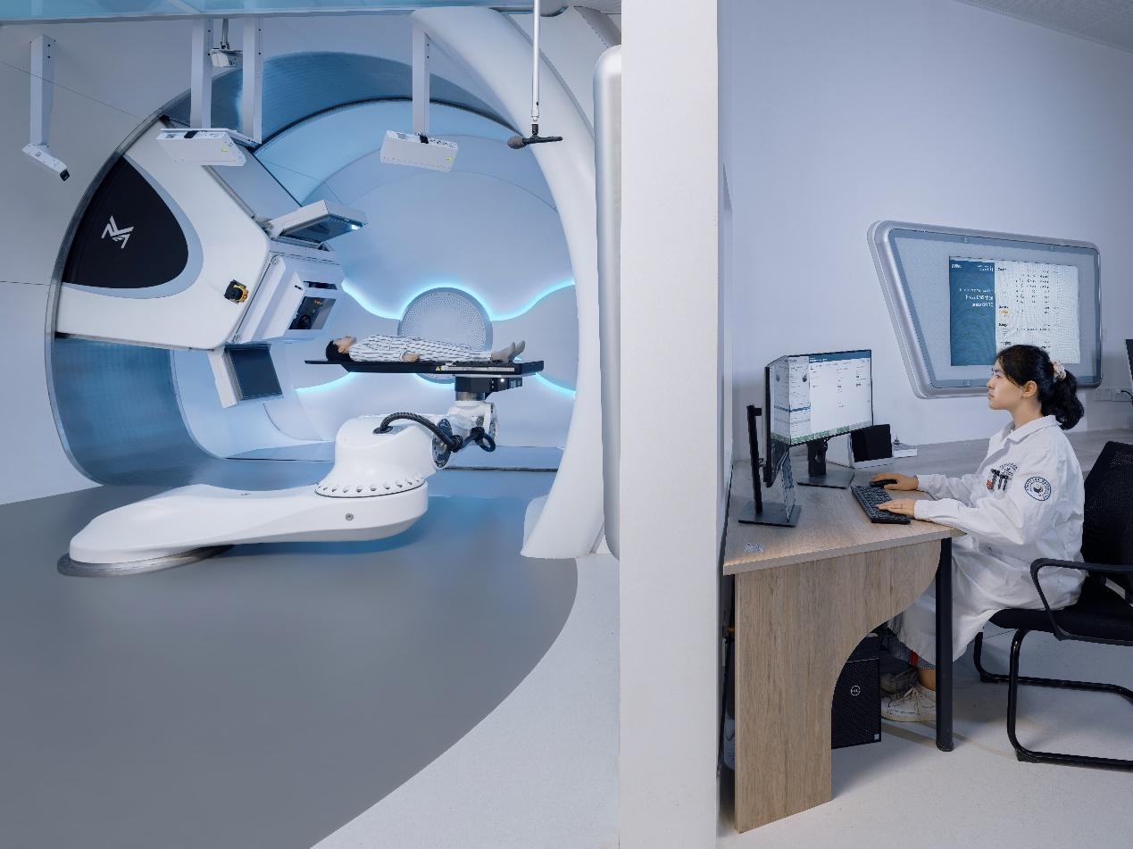 超导质子治疗系统拥有轻量化360°旋转治疗机架、高性能高精度的质子能量选择系统,配置的240MeV超导质子回旋加速器能够保障超高效率的剂量投放,CBCT图像引导系统拥有国内最大成像视野,具有结构紧凑、重量轻、维护成本低及配套专项治疗中心建设周期短等特点,打破质子治疗系统进口垄断。该国产化系统正式投入使用后,将有望降低国内患者的治疗成本,提高患者治疗期间的生活水平。同时,将提升我国高端医疗设备的治疗和产业化水平。
