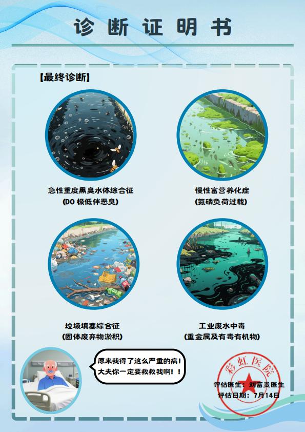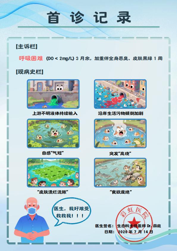 图文简介: 《河流先生病历本》以河流为对象,采用严谨的医疗病例本体系,构建了一套创新的拟人化科普叙事体系。作品将承载城市历史与生命的河流喻为罹患重疾的“河流先生”,通过其完整的诊疗记录,系统揭示水环境污染的严峻性