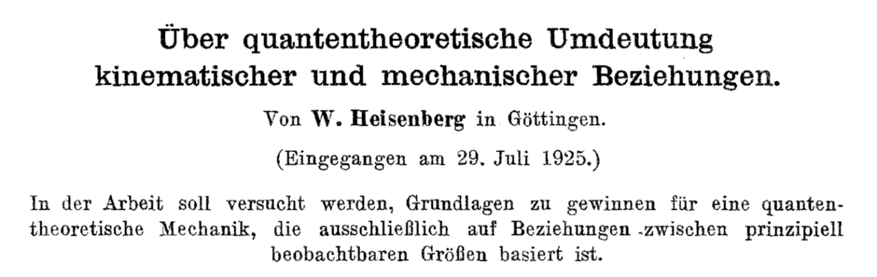 图2 海森堡于1925年发表的矩阵力学原始论文