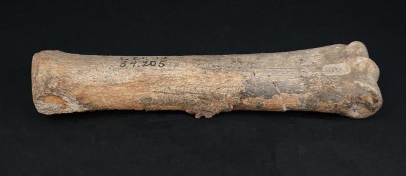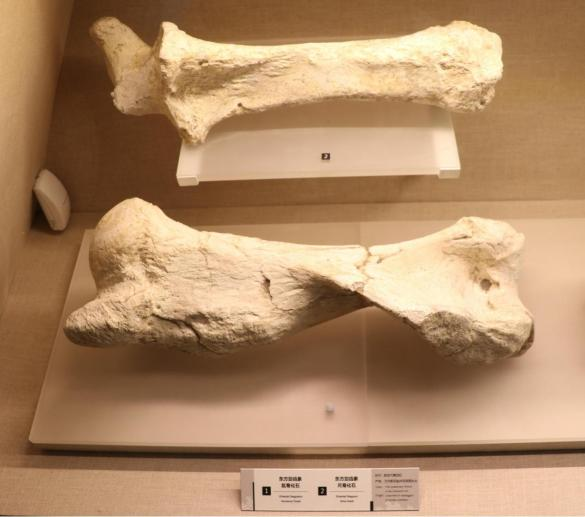 ▲万州盐井沟“龙骨”(东方剑齿象肱骨+尺骨)