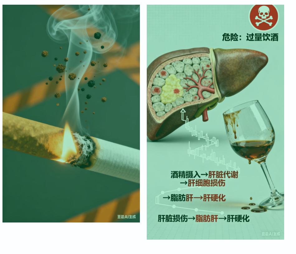 烟草燃烧会产生大量致癌物,而过量饮酒则会增加肝脏负担,两者都是明确的一级致癌物,戒除它们对防癌至关重要。