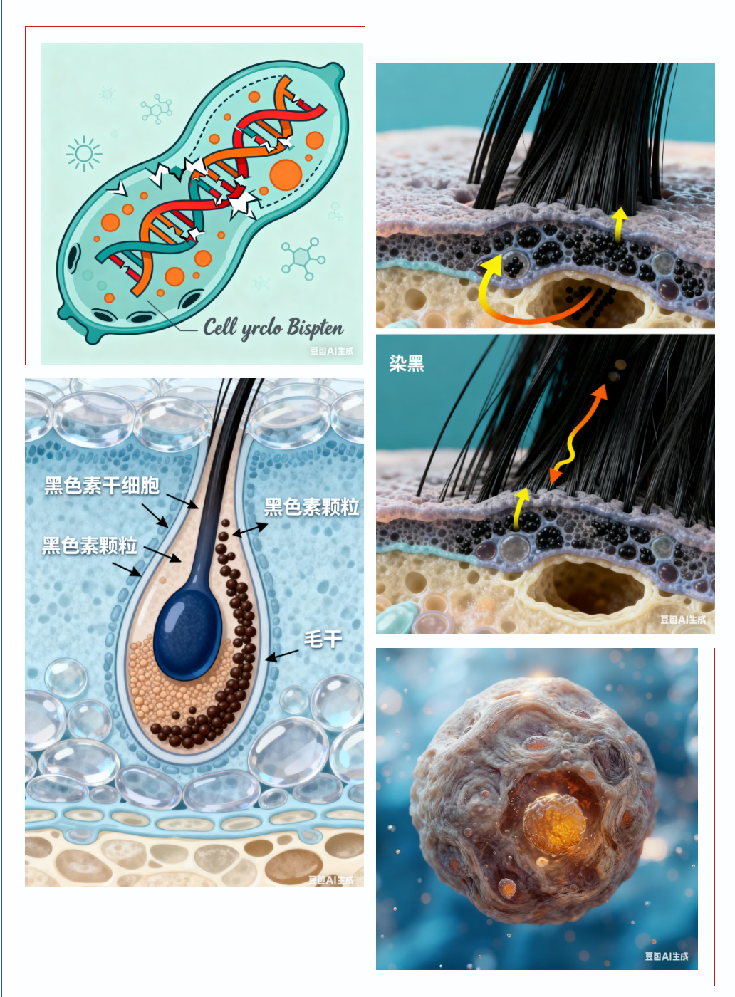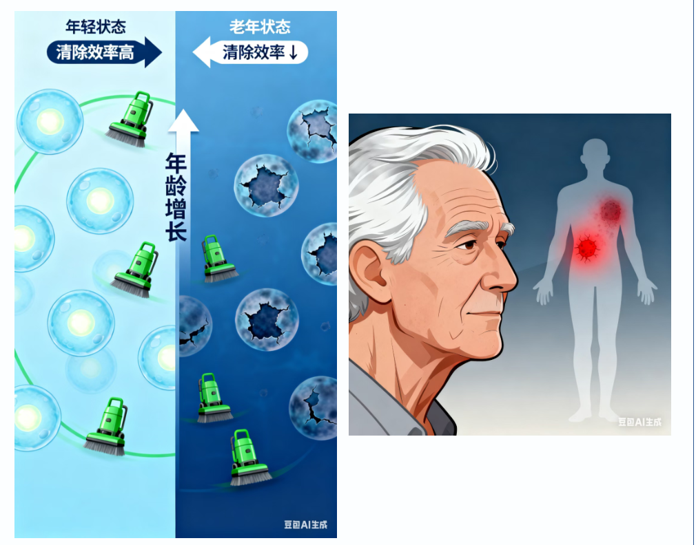 受损的干细胞面临两种命运:被清除(白发)或侥幸存活(潜在癌变)。随着年龄增长,这种清除机制的效率会下降,这也是为何老年人既白发增多,癌症风险也增高。