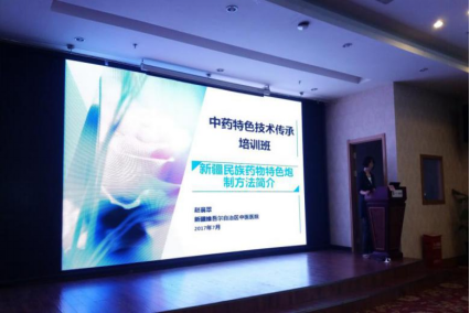 第三天上午,新疆特色中药资源的合理开发与利用的课程。新疆地处祖国的西北边陲,雪山、沙漠、草原、绿洲,“三山夹两盆”的地貌特征形成了复杂多变的地理环境,典型的大陆型气候造就了新疆富饶的物产。植物、动物、矿物质药,种类繁多,常用中药400余种,干旱少雨的荒漠戈壁遍生甘草、麻黄;白雪皑皑的冰峰岩缝隐藏雪莲花、红景天。新疆丰富的特色植物资源,有着大量的中药道地药材、民族医学专用药材和珍稀药材。随着人们对野生中药材需求量的急剧增加,不合理的采摘和开发使得新疆的生态坏境和自然资源受到了不同程度的破坏,走可持续发展路线,合理的开发和保护珍贵的自然资源迫在眉睫。贾晓光研究员介绍了依托新疆优势资源研发的产品以及生态经济型产业—肉苁蓉保健食品产业,利用肉苁蓉的生长特点,在保护环境的基础上,最大化开发经济产值,是保护环境和追求经济效益有效结合的典范。高晓黎教授向我们介绍了四大民族医药之一“维吾尔医药”。