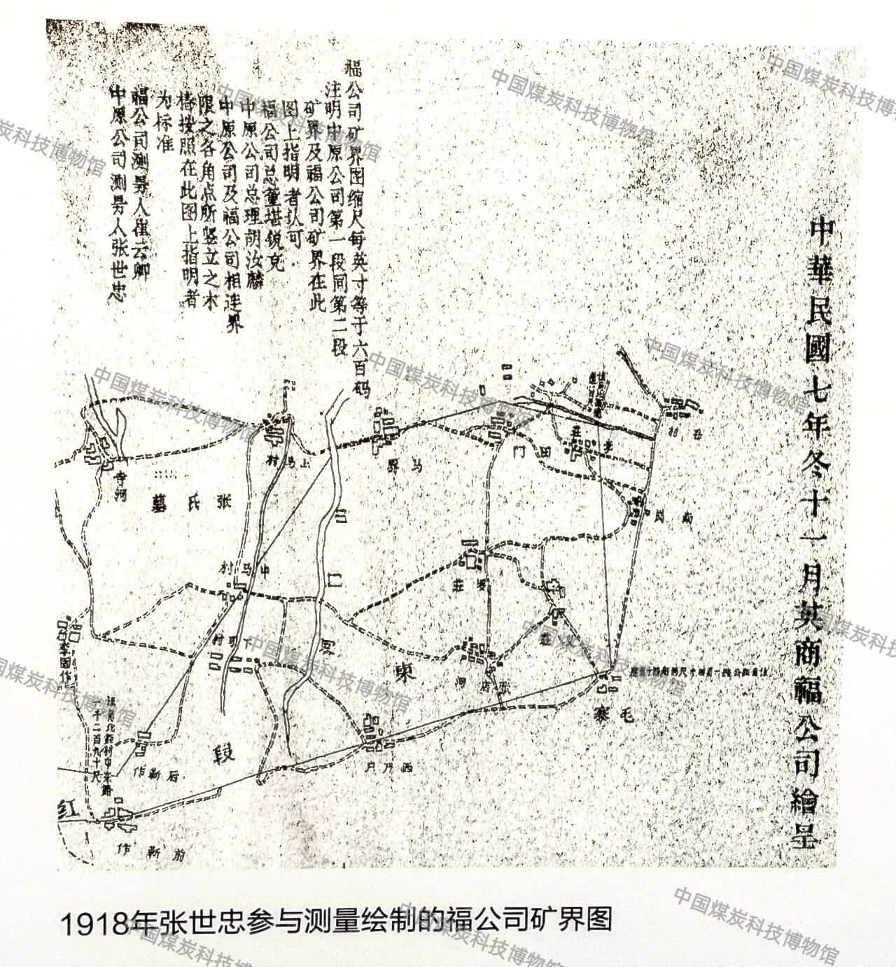 在中国矿业大学校史馆,展陈有一幅珍贵的矿界图,系1918年11月冬,英国福公司绘呈的矿界图。该图由福公司崔云卿和中原公司张世忠测绘而成,比例尺为1:21600,是报呈民国政府,界清英国福公司与河南中原公司矿界的依据。
