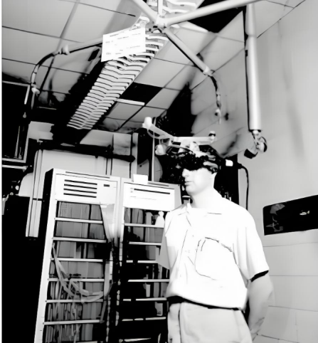 计算机图形学之父伊凡·萨瑟兰与其学生鲍勃·斯普劳尔创造了名为“达摩克利斯之剑”的头戴显示器。尽管造型笨重、图像简陋,但它确立了VR头显的基本形态。