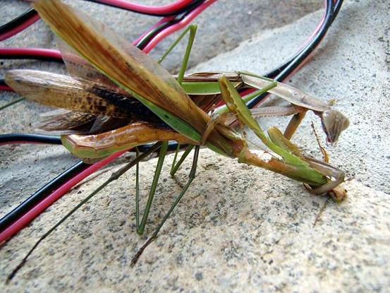 一只雌性中华大刀螳正在吃掉一只与她交配中的雄性(图源:Apple2000|Wikipedia)