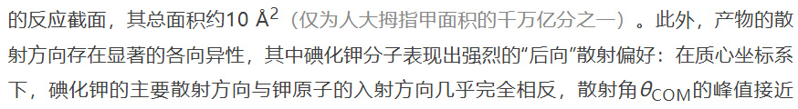 基于以上实验结果,赫施巴赫利用运动学分析证明钾原子和碘甲烷分子的反应存在可观测