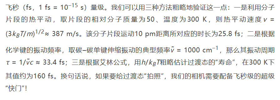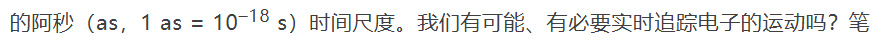 诺贝尔奖委员会在给泽维尔的颁奖公告中说,“我们已经抵达了道路的终点:没有化学反应比这更快了(We have reached the end of the road: no chemical reactions take place faster than this)”。的确,我们刚刚亲手计算验证了,飞秒是化学反应中原子运动的时间尺度,但这并不意味着飞秒就是化学动力学研究的尽头。亲爱的读者朋友,假如你还没有忘记前文讨论过的B–O近似,就能意识到原子/分子中电子的运动对应着更加短暂