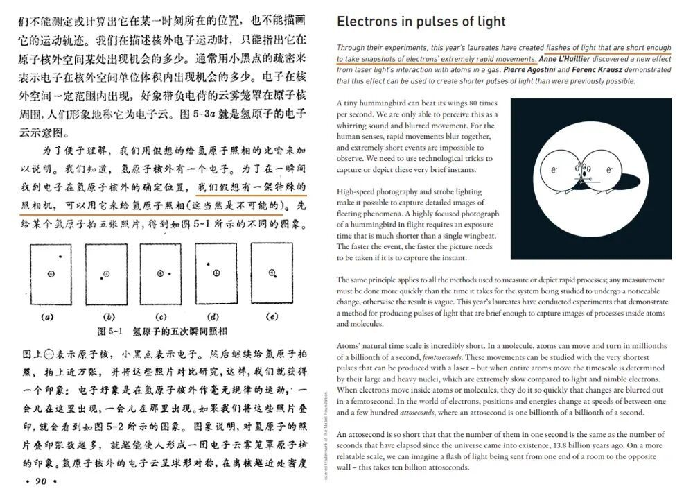图18.(左)人民教育出版社编高级中学课本《化学乙种本》(上册)内页。(右)2023年诺贝尔物理学奖科普背景资料。图片来源: