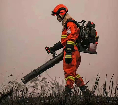 扑救阶段的 “科技武器库”:风力灭火机、高压水雾灭火机、消防直升机可协同 “作战”:风力灭火机喷出的高速气流,通过 “隔绝氧气” 扑灭初期火焰;高压水雾灭火机喷出细水雾,利用 “蒸发吸热” 快速降温;消防直升机吊挂着大 容量的吊桶,从空中喷洒 “扇形水雾”,覆盖大面积火场。
