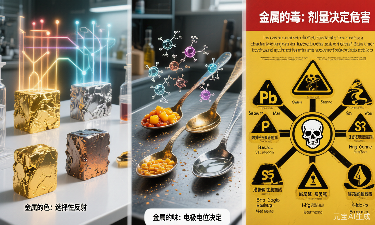 材料科学除了研究金属的结构特点和性能外,研究金属的色、味和毒也是一种全新的拓展。