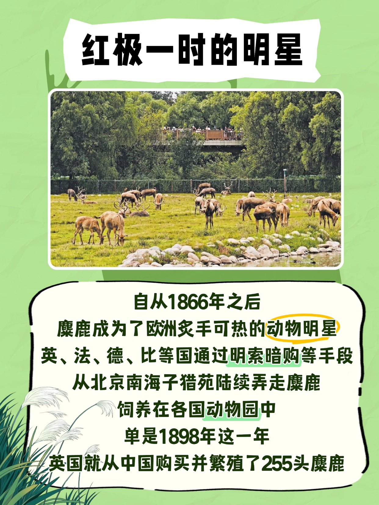 👀 你知道吗?那些温顺眼神中带着神秘色彩的麋鹿,也曾有过一段跌宕起伏的“出国”传奇!🌍