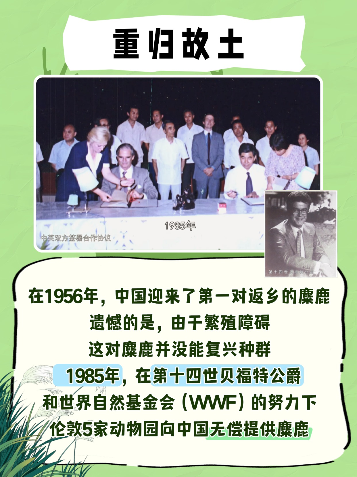 不过,希望从未熄灭!1985年,一场跨国的救援行动悄然展开。第十四世贝福特公爵携手世界自然基金会(WWF),伦敦的5家动物园慷慨解囊,无偿向中国提供了珍贵的麋鹿资源!
