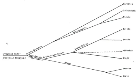 因为语言的分化在演化历史上会多次出现,所以有亲属关系的语言从历史发生的角度看,有亲疏远近的不同。如果我们能够重建这个分化的历史,无疑会对探索人类发展的历史和语言的奥秘提供一个视角和窗口。因此,众多学者都尝试着梳理历史的脉络,使原始的语言发展历程得以重现。而谱系树模型就是展现语言谱系分化的重要工具。