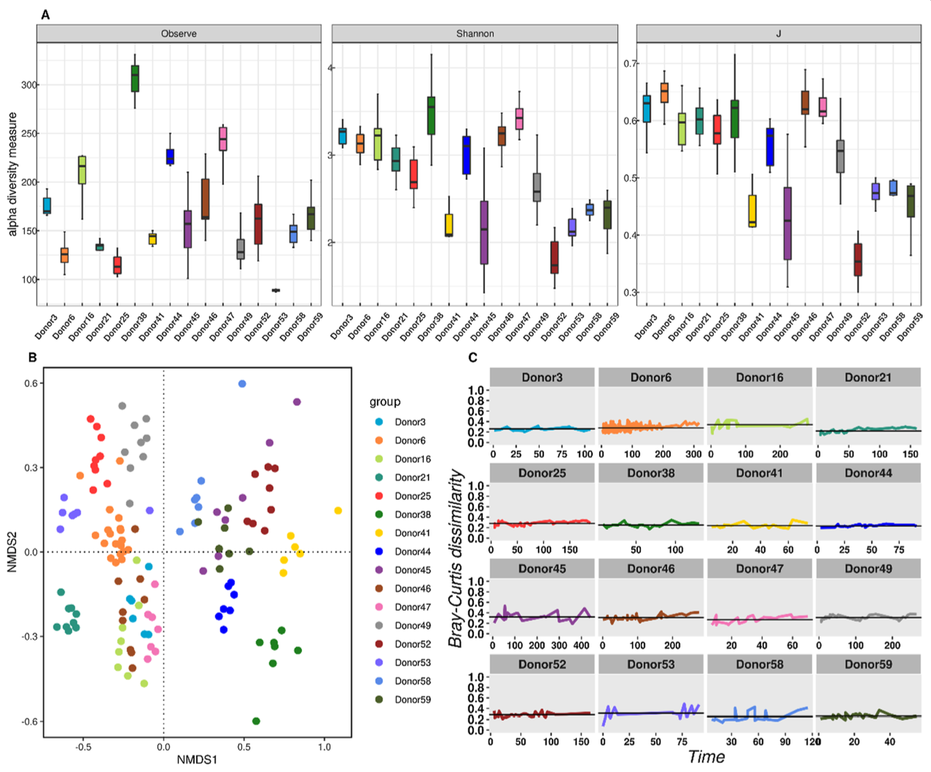 纵向监测显示,多数合格供者的菌群结构稳定,α 多样性波动范围较小。个别供者在短期感染或饮食改变后出现暂时性失衡,提示需动态复核。