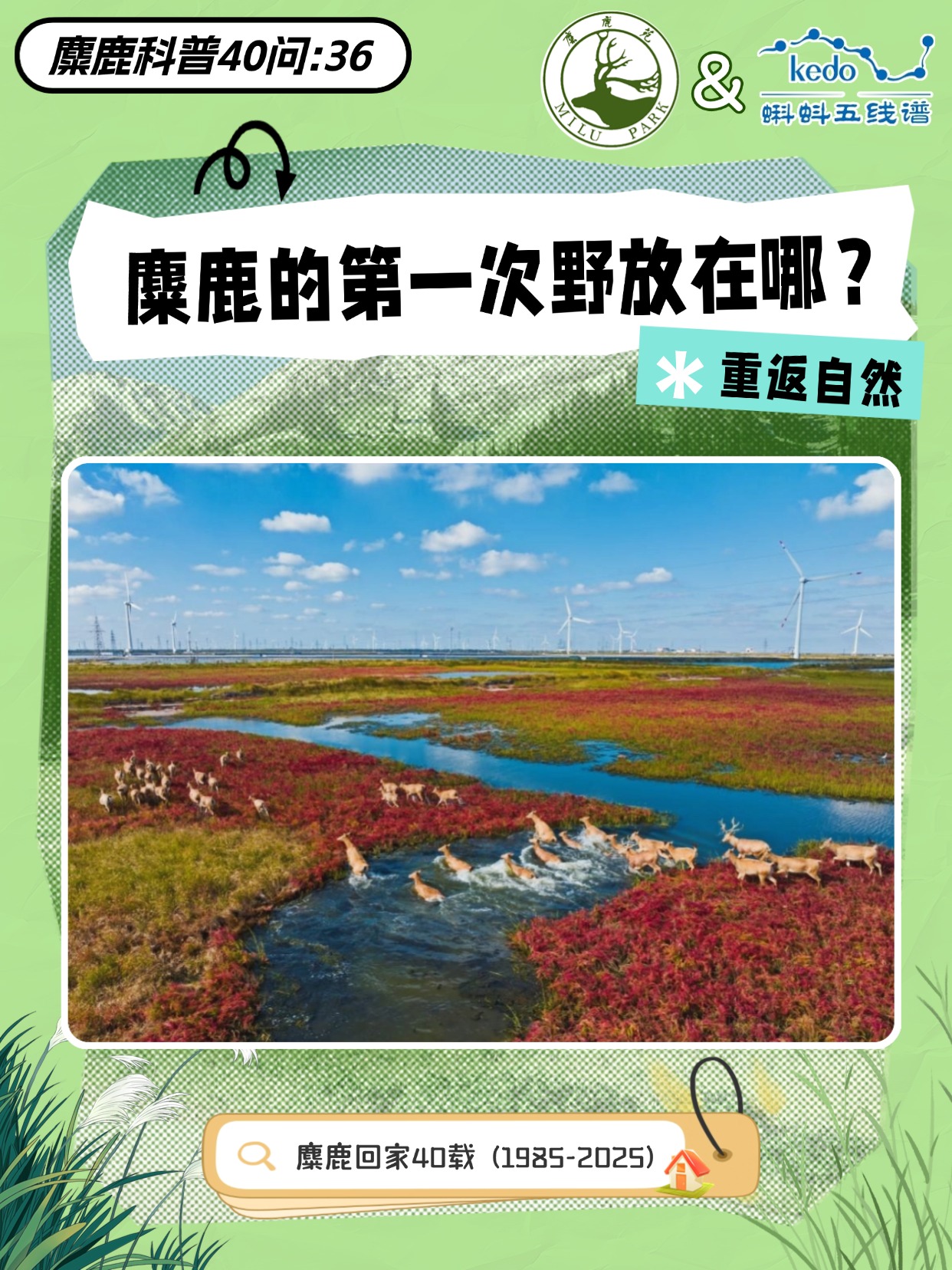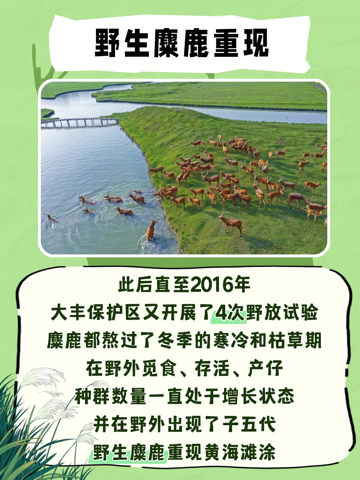 🦌 8只麋鹿(含3只孕鹿)奔向黄海滩涂