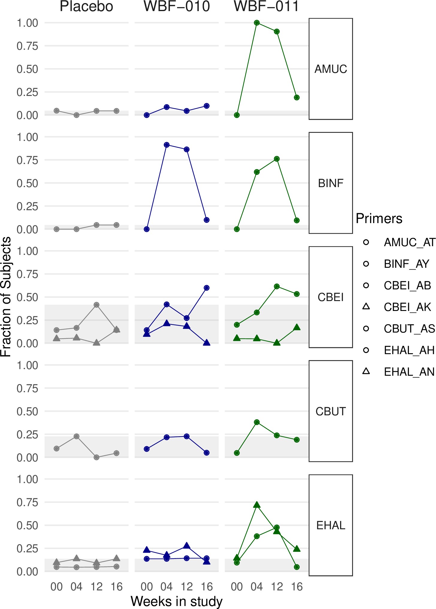 分子检测结果进一步印证了这一点。在服用 WBF-011 的受试者粪便中,研究者能够稳定检出 A. muciniphila 与 B. infantis,而其他三种菌的检出率较低。干预停止四周后,这些菌株的检测率迅速下降,显示它们在体内的定植是可逆的。虽然这种短暂存在似乎难以解释持续的代谢改善,但团队推测,这些菌可能通过代谢信号或产物(如丁酸)间接影响宿主代谢。