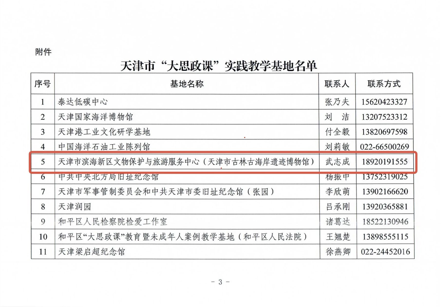按照《关于公布入选天津市“大思政课”实践教学基地的通知》,经推荐申报,市教育两委组织评审,天津市滨海新区文物保护与旅游服务中心(天津市古林古海岸遗迹博物馆)入选天津市“大思政课”实践教学基地。