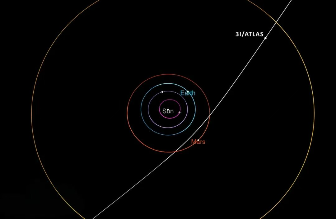 3I/阿特拉斯在太阳系中的轨迹示意图