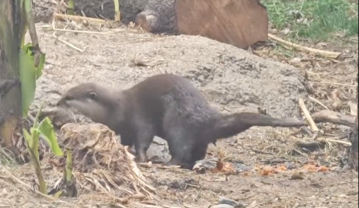 不不不~事情的真相是:小爪水獭正在认真标记领地呢!