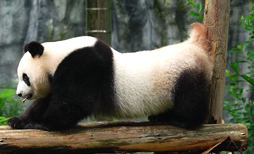 雄性大熊猫标记时,会高抬一条后肢倒立排尿,以便将尿液排得更高。一般来说,标记位置越高,说明雄性体形越大,且更高位置的尿液气味传播更远,更易吸引雌性大熊猫。