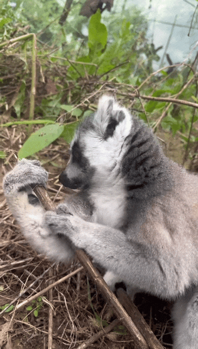 它们不仅用这些腺体涂抹树枝标记领地,还会将分泌物涂满长尾,在争斗中挥舞发起“臭气攻击”,利用此等"生化武器"示威对手。