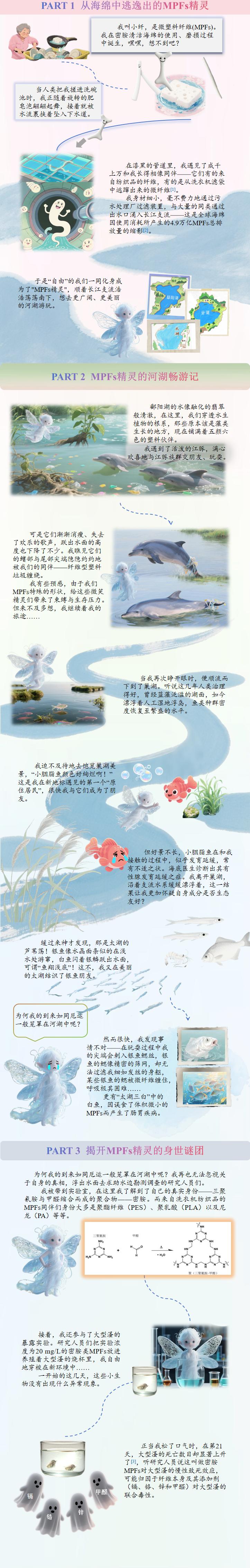 图文简介: 当家庭废水裹挟着来自清洁海绵的小纤(微塑料纤维MPFs)冲入长江支流时,这场横跨中国东部河湖的旅程便注定裹挟着悲喜交加的宿命。从鄱阳湖的蓼子花海到巢湖的渔火,再到太湖的芦苇荡,小纤以微观生命的视角见证
