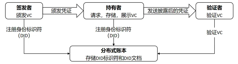 DID是一种新型的分布式数字身份,由用户自主生成、注册和管理,无需中央注册机构。DID技术通常基于分布式账本技术实现身份锚定,结合可验证凭证机制,实现身份信息的可信传递与身份验证。DID技术主要包括三部分核心组件:DID标识符、DID文档和可验证凭证。