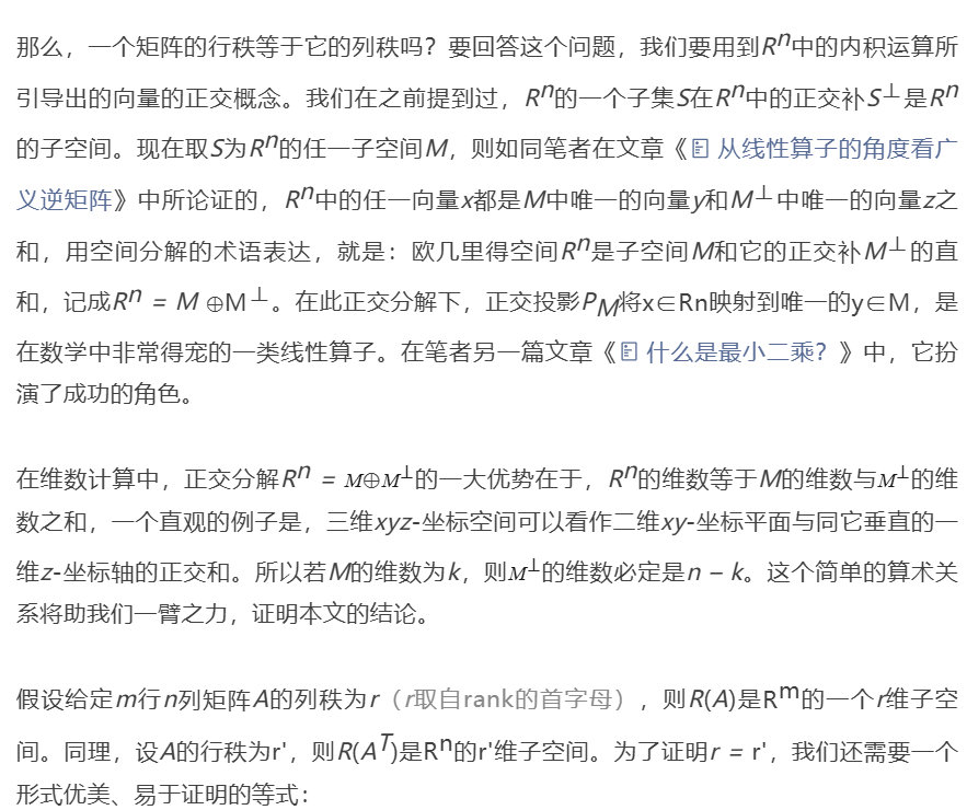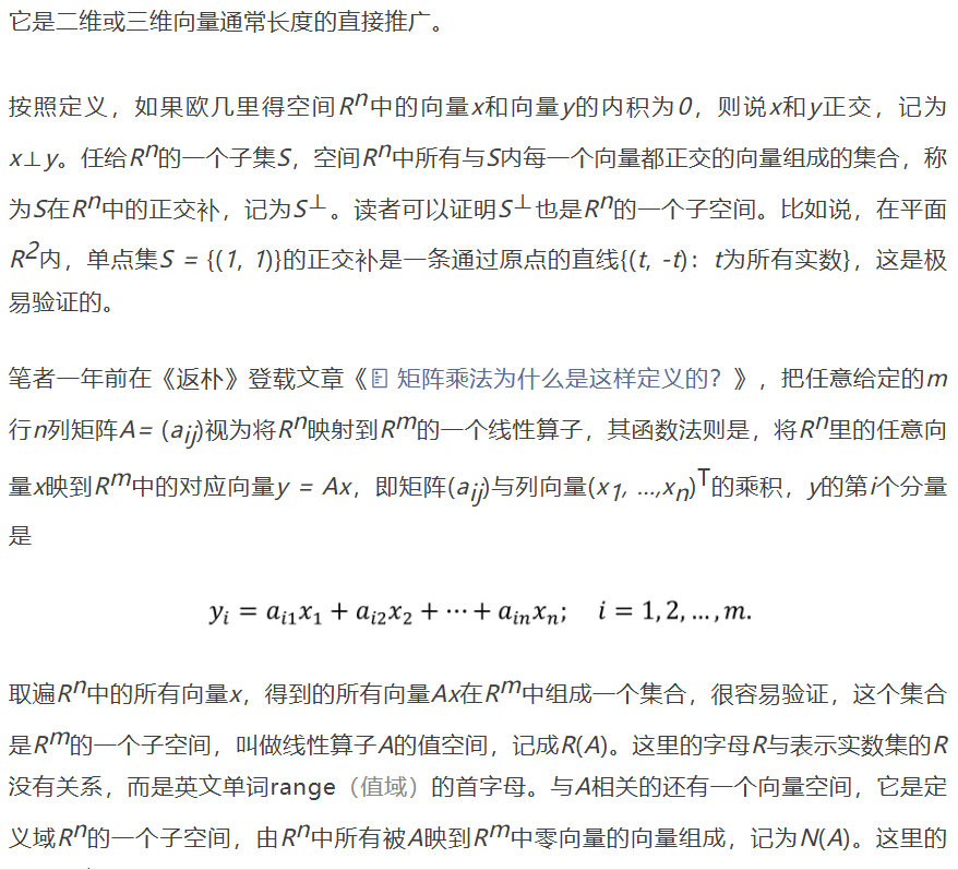 在进入下面的数学讨论之前,我们先做两点说明。首先,为了与笔者此前文章保持一致,本文将继续采用泛函分析中的通用术语“线性算子”(linear operator),而不用常见的“线性映射”(linear map,如前述阿克斯拉教授的著作)或“线性变换”(linear transformation,见多数线性代数教科书)。其次,和以前一样,我们只在实数范围内谈论矩阵,当然文中的结果对复矩阵甚至一般数域上的矩阵也成立。照常,符号R代表实数集。