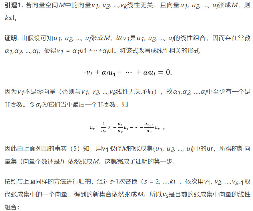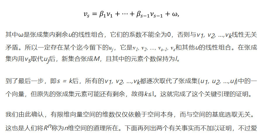 我们只需论证k≤l就够了,因为互换这两个基底便推出l≤k,从而得证l = k。事实上,我们可以证明更一般的命题: